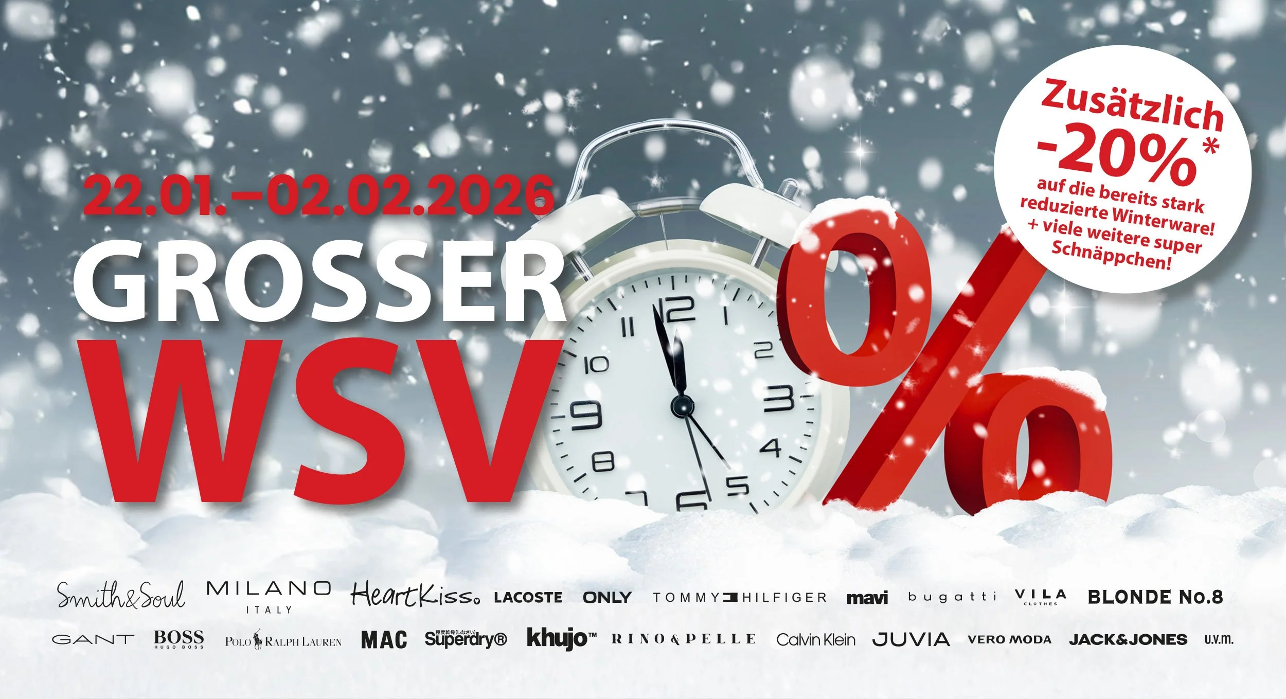 Der Winter wird stylisch – und unglaublich günstig! In unserem großen WSV Sale erwarten dich bereits stark reduzierte Winter-Highlights und zusätzlich 20 % Rabatt auf ausgewählte Winterware.